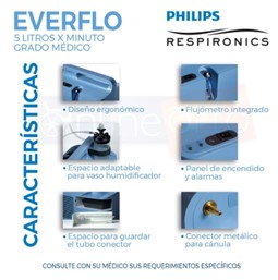 Concentrador de Oxigeno Everflo, de la marca PHILIPS, una de las marcas mas reconocidas a nivel mundial, reconocida por su lujo, calidad y durabilidad.