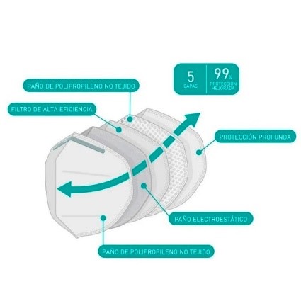 Cubrebocas KN95 con 5 capas de protección caja con 10 piezas certificado GB2626-2006